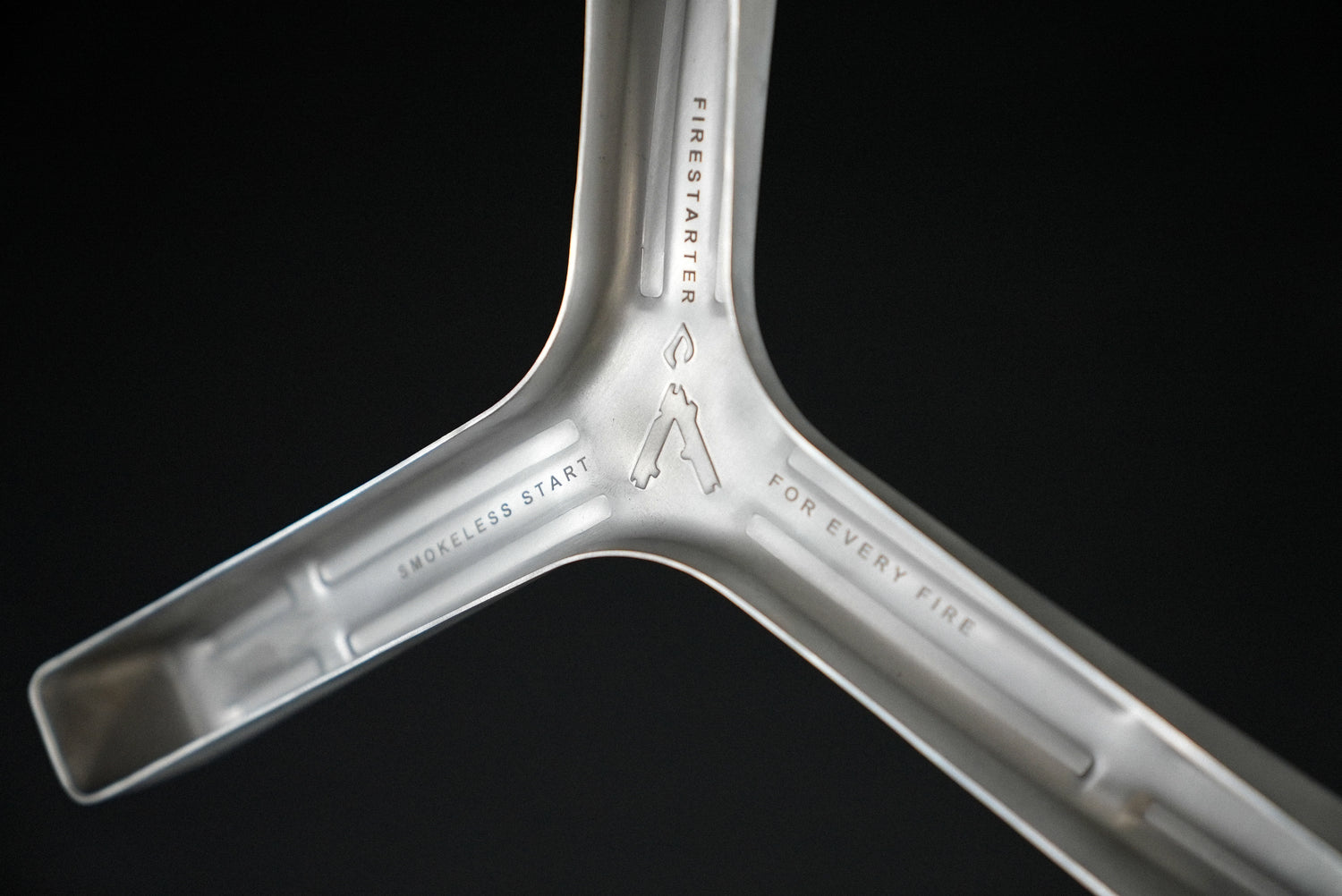 Meet Spark — the Infinite Fire Starter. Pour in 10 oz of rubbing alcohol, stack your logs, and light for a powerful flame that gets you to a low-smoke fire fast. The lifted tri-wing shape spreads heat and pulls 360° airflow for hotter starts with less fuss. Infinitely reusable, clean-burning, and designed to live in your pit—no paper, gels, or Boy Scout skills required.